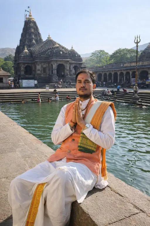 Pandit Ganesh Shastri is a highly respected and experienced pandit from Trimbakeshwar, residing with his family in proximity to the sacred Trimbakeshwar Jyotirlinga Temple. He specialises in performing a wide range of Vedic pujas, including Kaalsarp Shanti, Pitra Dosh Nivaran, Mangal Dosh Shanti, Narayan Nagbali Puja, and Maha Mrityunjaya Jaap.